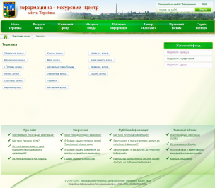 Інформація про житловий фонд міста по адресному пошуку або управителю. Представлені дані про будинки і їх характеристиках, інформація про актуальний стан їх складових (перекриттях, горищах, підвалах, несучих стінах, даху тощо), обладнанні і лічильниках, прибудинкової території, плани будинків і діючі тарифи.