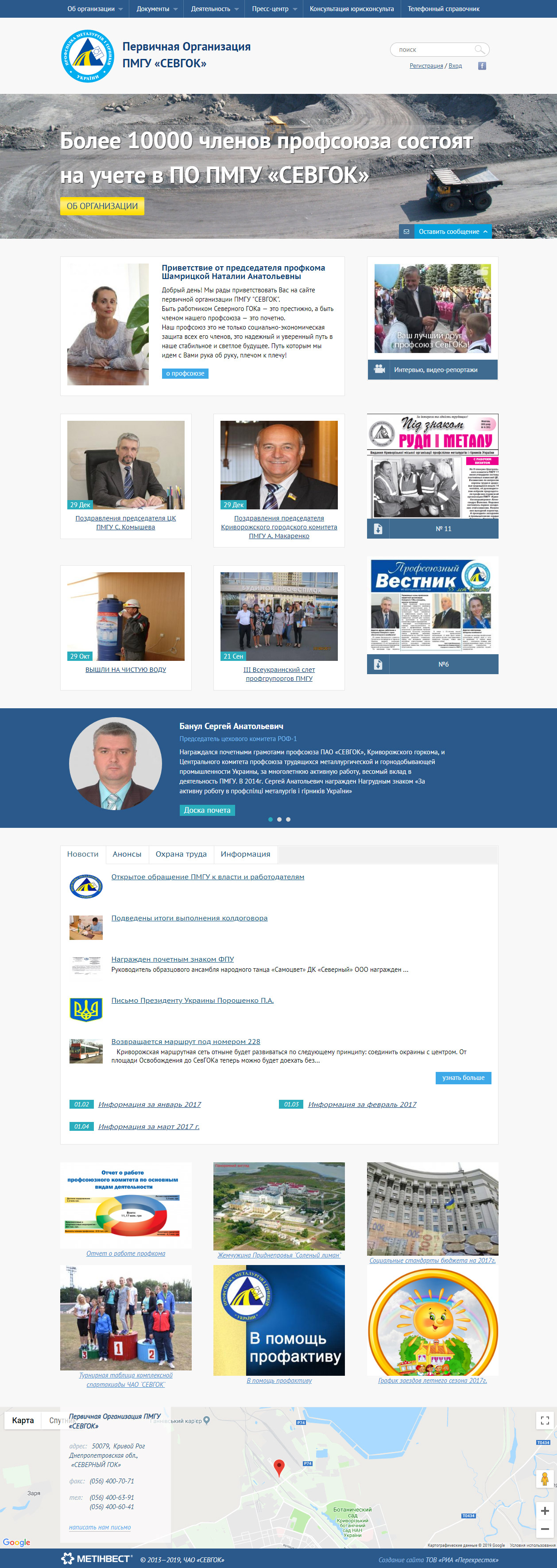На офіційному сайті профспілки гірників ПАТ «Північний ГЗК» представлена інформація про життєдіяльність організації, досягнення трудящих, а також публікуються матеріали профспілкової газети "Прогрес". P>